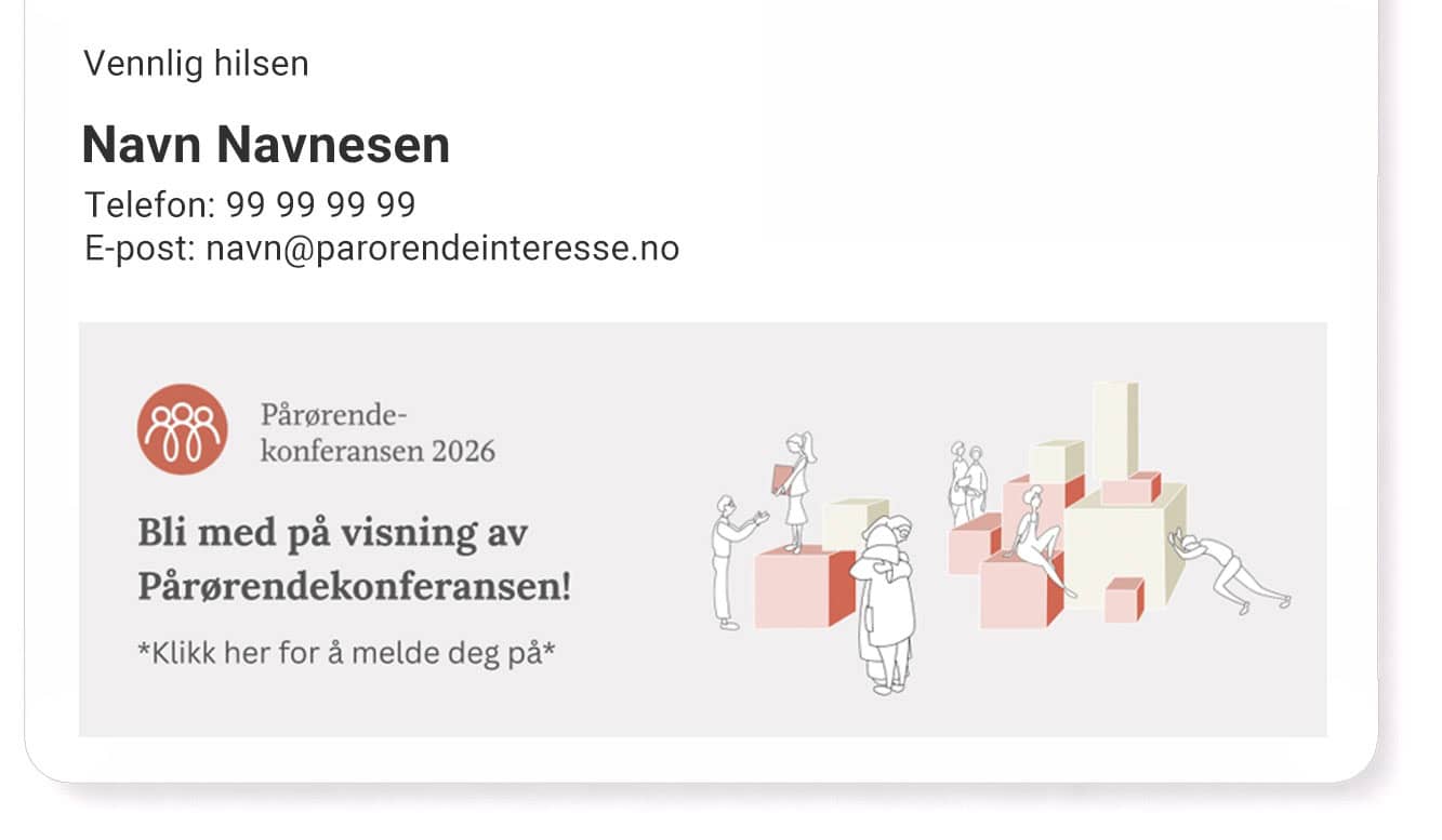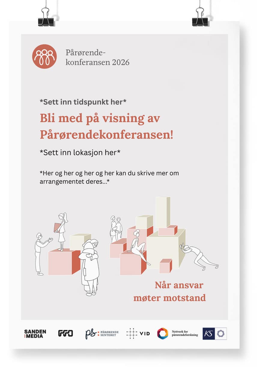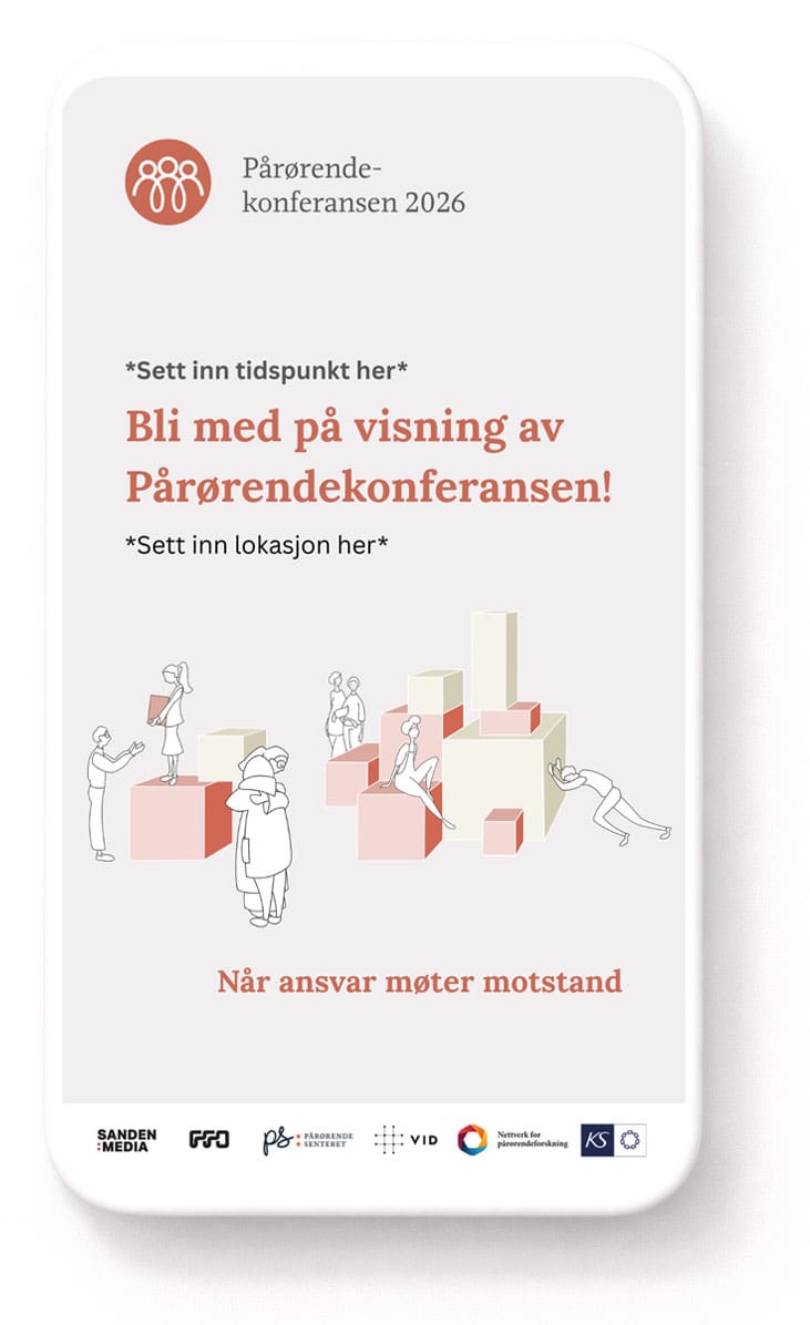 Vi samler fagpersoner og pårørende til felles visning av Pårørendekonferansen, med refleksjoner, erfaringsdeling og ny kunnskap.